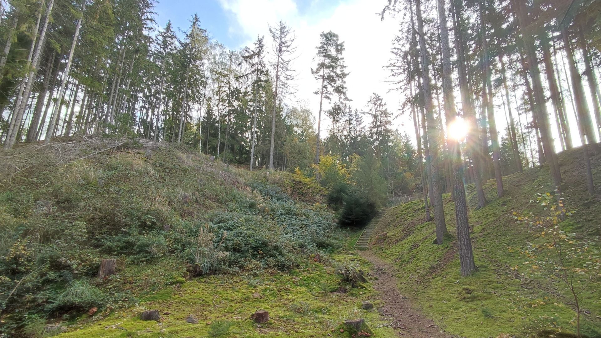 Trasa lokalitou vede po lesních pěšinách i uměle vytvořených schůdkách a zavede vás k šachtě Alešce, důlnímu hotelu, k louhovně nebo bývalým kalojemům. Půjdete kolem šachet Václav a Jindřiška a dozvíte se o zdejší hornické kolonii.