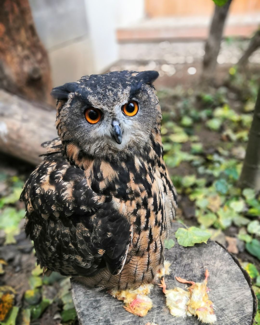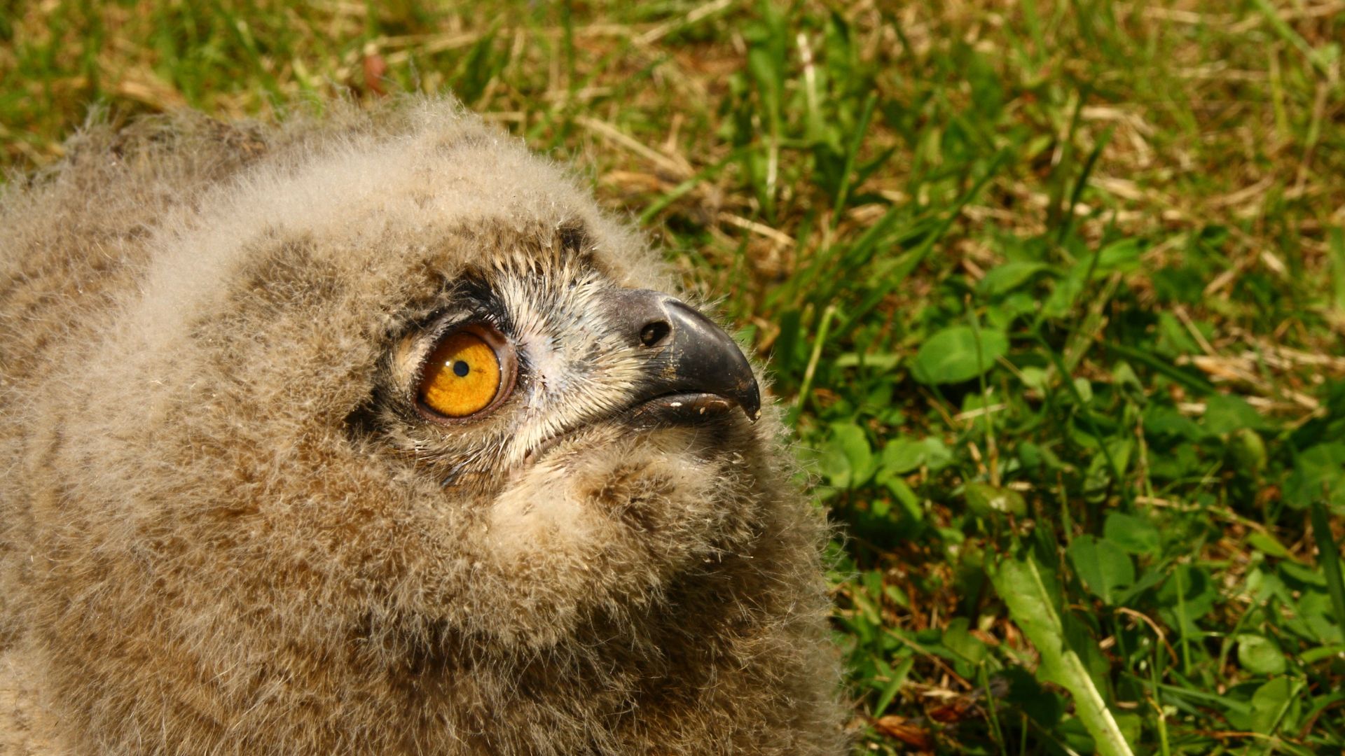 Větší z nás je samička, tu srazilo auto a poranilo ji křídlo. Menší je sameček, který utrpěl zlomeninu křídla po nárazu do drátů elektrického vedení. Oba tak nedokážeme dobře létat a nezvládneme si sami obstarat dostatek potravy.