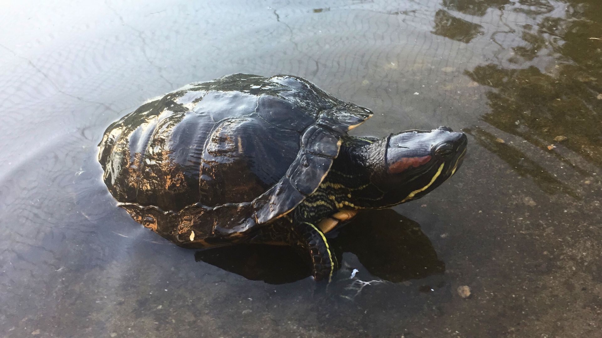 Pochází ze Severní Ameriky, její původní domovinou je okolí Mexického zálivu. Není to dlouhá doba, kdy byla oblíbeným terarijním zvířetem v domácnostech. Bohužel jako dospělá želva není příliš přátelská, a tak se stávalo, že se o ni majitelé nechtěli dále starat a vypustili ji do volné přírody. Od té doby ji lze spatřit plavat jak v jihočeských rybnících, tak ve Vltavě v centru Prahy.